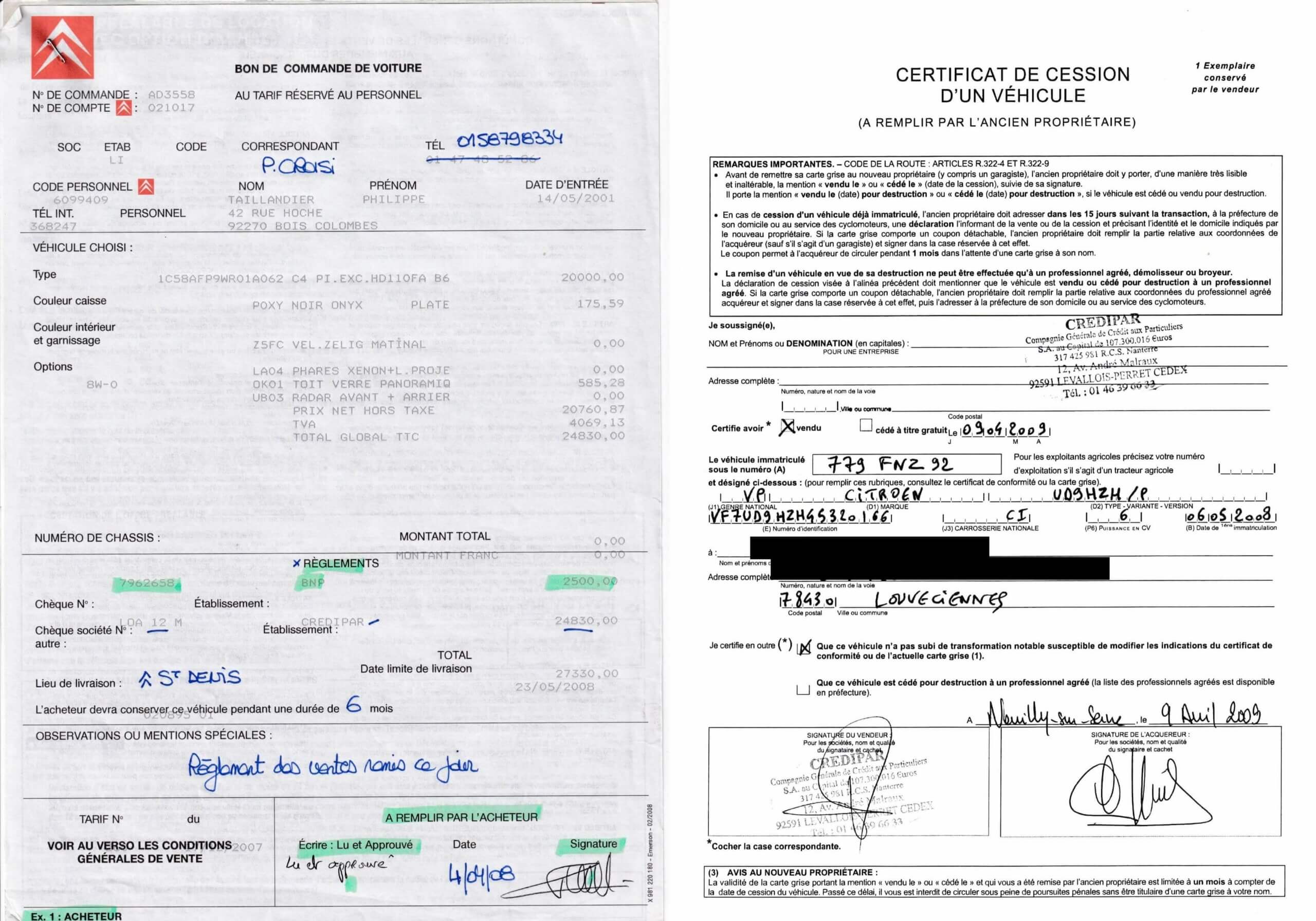 Les deux jalons de la vie de mon premier C4 Picasso. Outre une transaction de vente fluide, je garde le souvenir d’une très bonne relation avec mon acheteur, avec qui je suis d’ailleurs resté en contact et qui lit peut-être ces lignes… (collection personnelle)