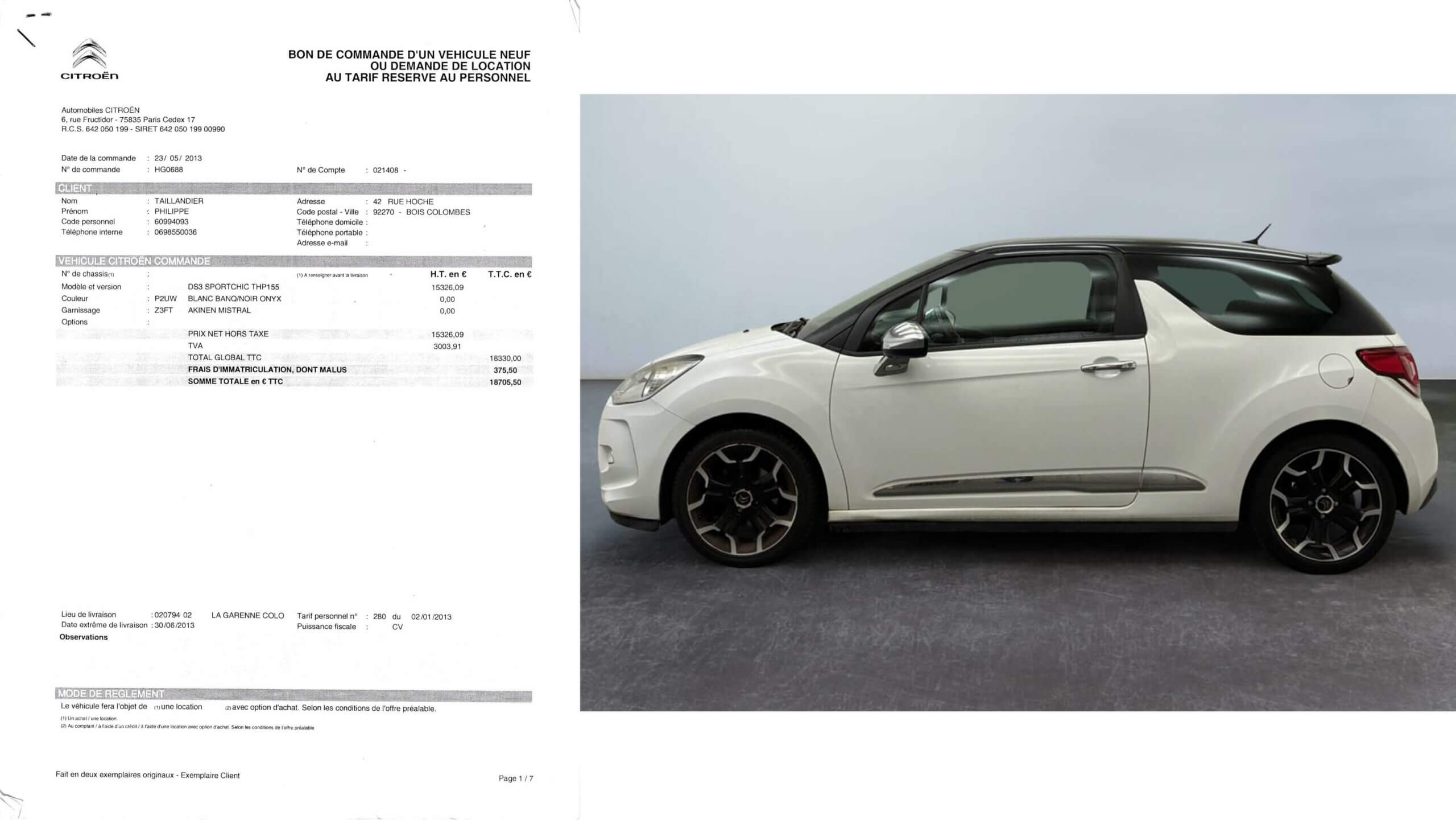 Blanc Banquise (non métal), toit noir, garnissage maille… ma première DS3 est, hormis le THP 155, « minimaliste » sans aucune option. Simple mais efficace. (sources : collection personnelle + leboncoin.fr)